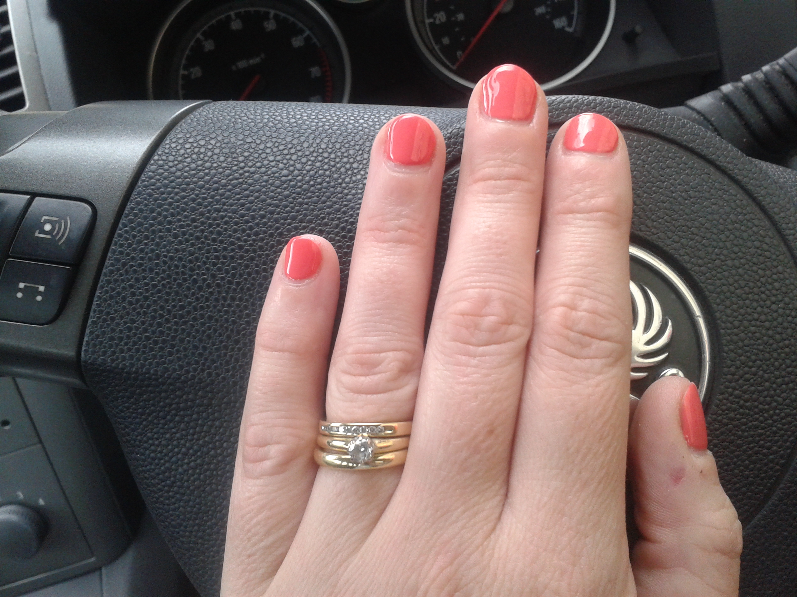 After just 6 weeks of growing my nails, which I have bitten for 30 plus years! I was able to have my first ever proper manicure, see here for week by week photos. I know it’s a little sad to mention here, but I am just soooo not ashamed of my hands any more… and that’s a big deal for me. Any how, bragging done I would just like to wish you all a very good week and I will check in again as soon as I am able…