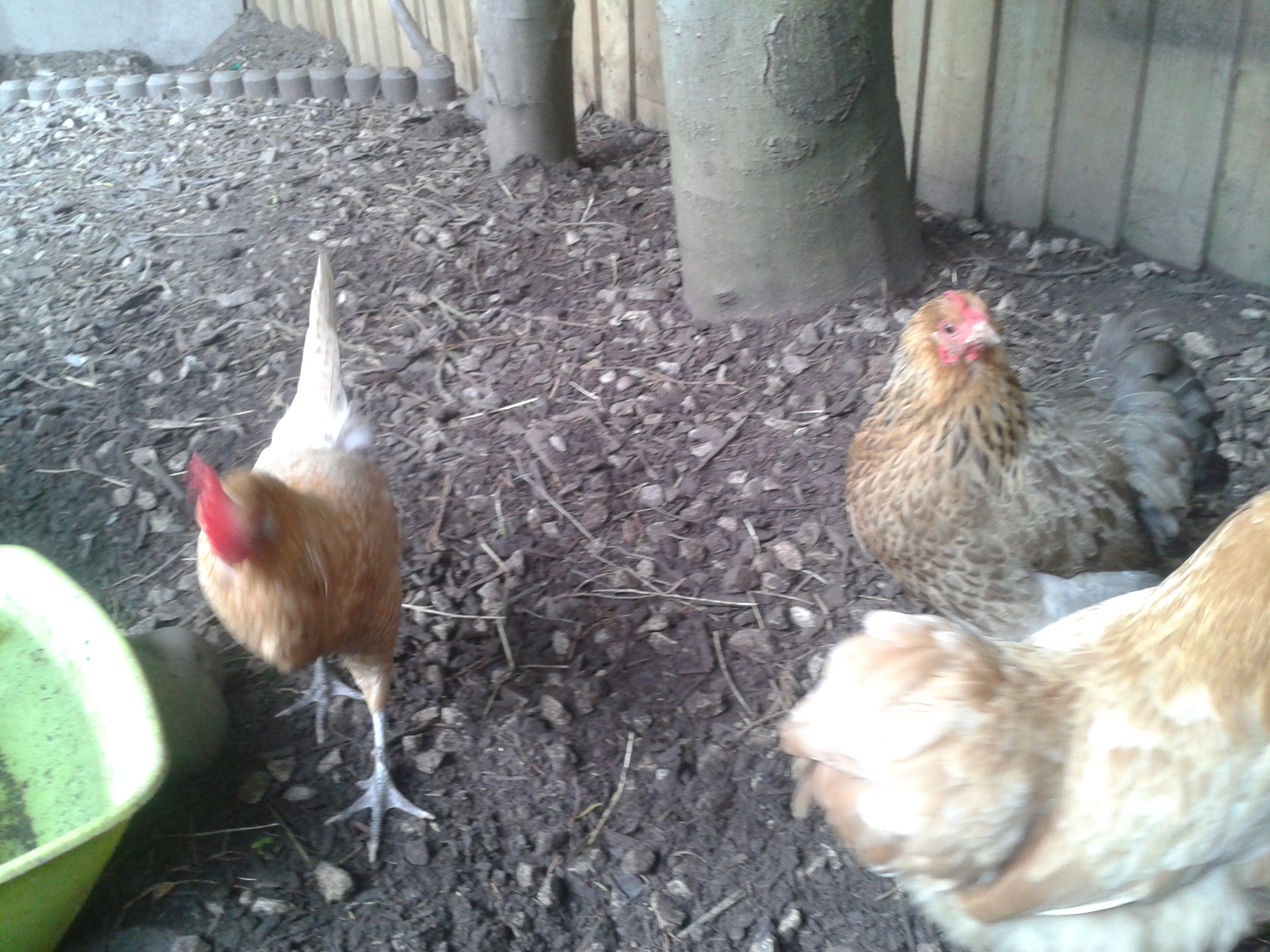 Heidi, Holly and Bo… Sunny was busy laying an egg!!