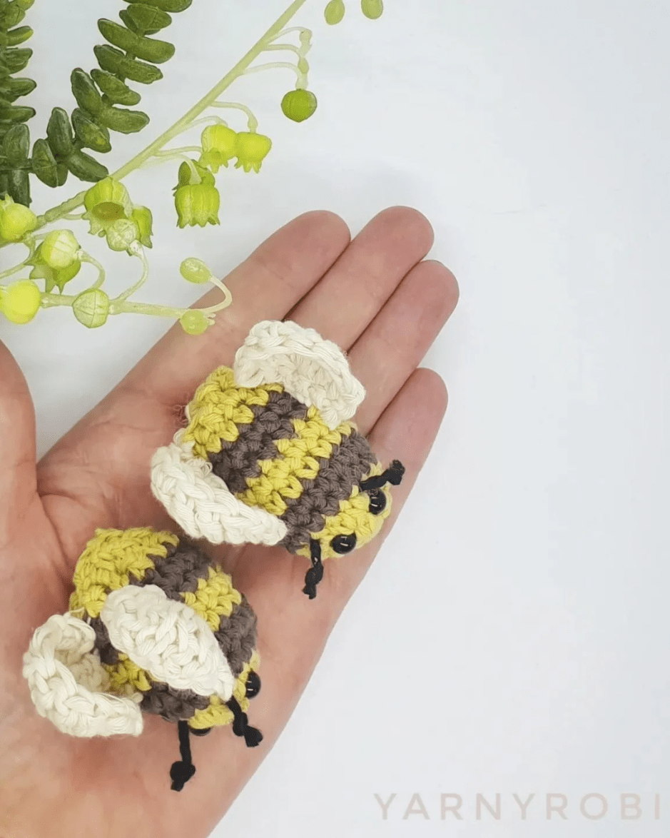 This free Yarny Bee crochet pattern is a simple amigurumi bee design that’s quick to make, great for using leftover yarn, and perfect for handmade gifts or craft fairs. They make sweet bag charms. They can be added to summer wreaths. They are perfect for all kinds of handmade décor. They are also quick and simple to crochet. They’re ideal for market sellers looking for fast makes. And make thoughtful gifts for friends and teachers. They’re also a lovely way to use up leftover yarn from your stash, especially if you’re trying to keep things tidy and actually use up those small odds and ends.