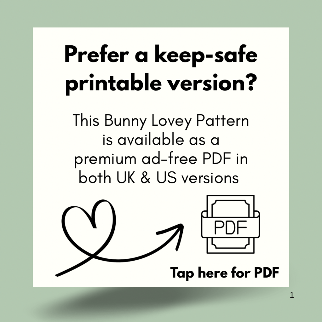 Prefer a printable, ad-free version?I’ve created a tidy PDF version of this Bunny Lovey Pattern with BOTH UK and US crochet terms included. This way, you can follow the version you prefer with no conversions. Perfect if you like to print your patterns or follow them offline.