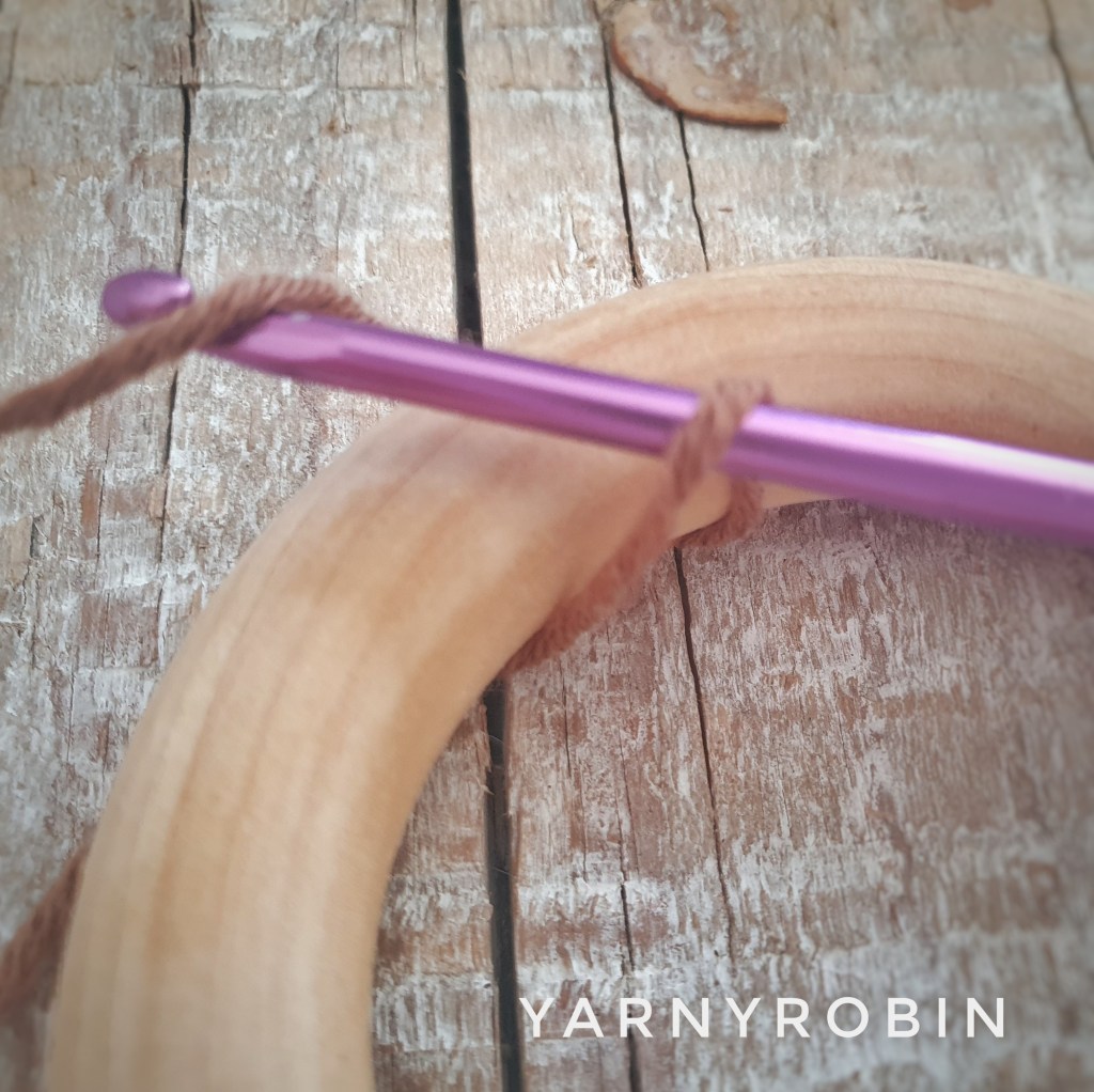 Begin by securing yarn around the teething ring with a slst (this does not count as a st)