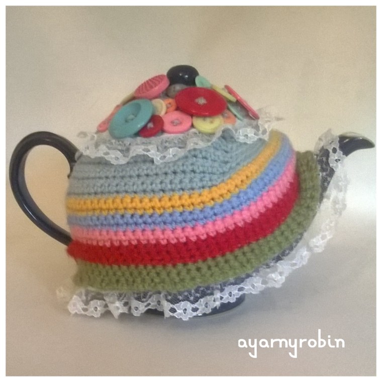 The pattern makes a tea cosy that fits a standard 4 cup teapot.