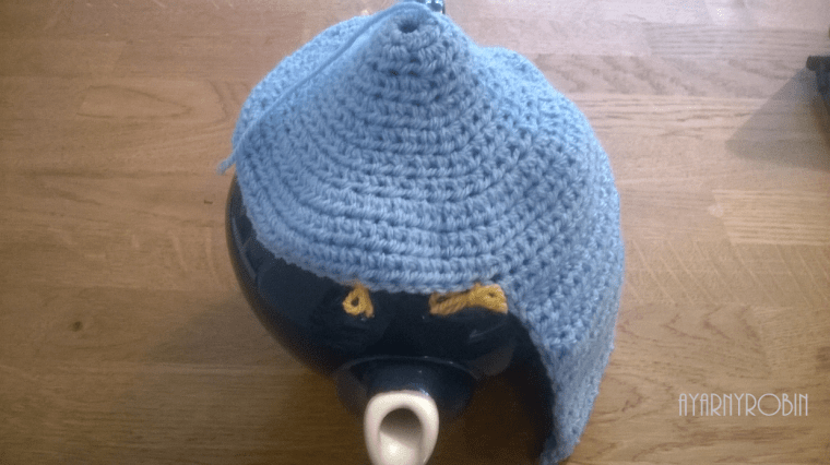 Side Seam: Place cosy on teapot and mark with a pin across top of handle, slst from top of cosy down to this point (approx. 1.5cms).