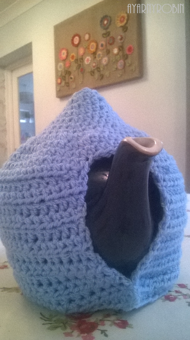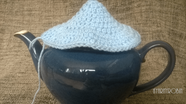 Side Seam: Place cosy on teapot and mark with a pin across top of handle, slst from top of cosy down to this point (approx. 1.5cms).