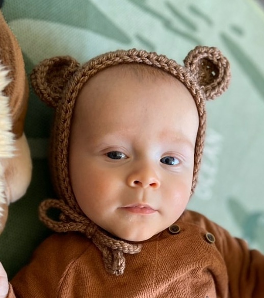 This beautiful baby bear bonnet is sure to make a perfect baby shower gift for a precious little one. Or indeed this cute little bonnet would make a sweet photo prop to take along to a newborn photoshoot. Of course, it would also be great for dress up and everyday wear too!