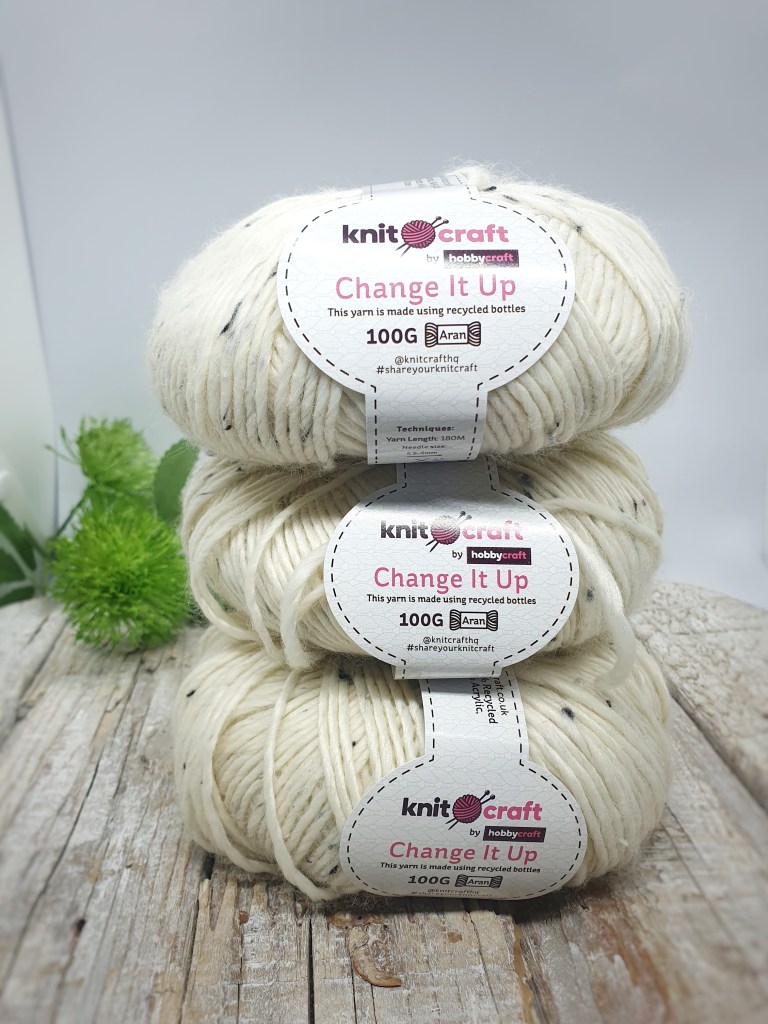 I used this aran / worsted weight yarn which I found in Hobbycraft. It is beautifully soft and it is made from mostly recycled bottles…I still don;t understand how it feels so soft and squishy!!!