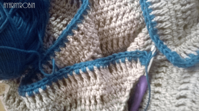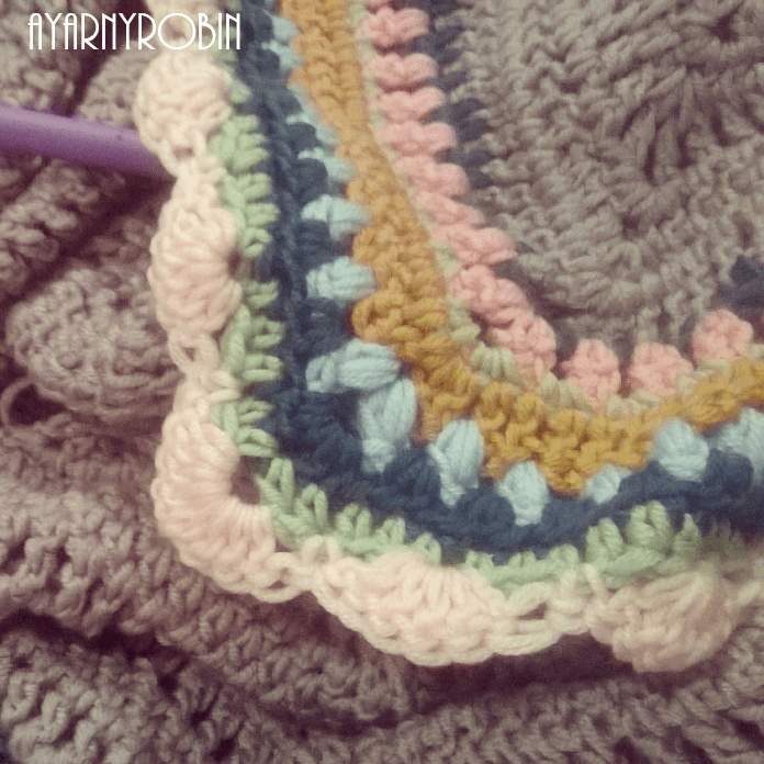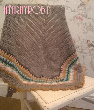 I decided to treat my recipient to a Scheepjes whirl to hook this shawl in…well to treat myself really as I had never hooked with this yarn before and I had wanted to for ages. I chose the Blueberry Bambam which was my second choice. I had originally chosen the Jaffa Pop colourway…but it was out of stock everywhere, and I mean everywhere and was not due to be re-stocked until after Christmas. So Blueberry Bambam it was.